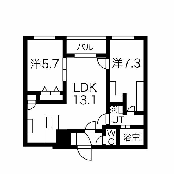 2LDK / 56.8㎡ / 1階
