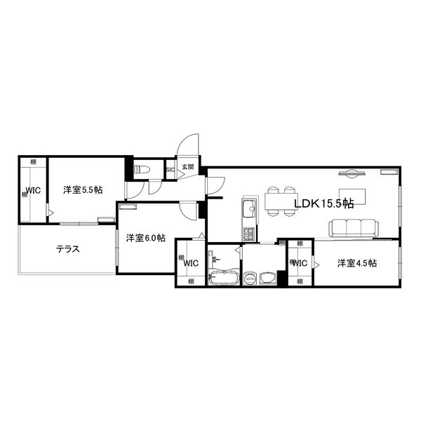 3LDK / 77.1㎡ / 1階