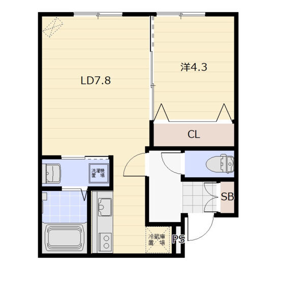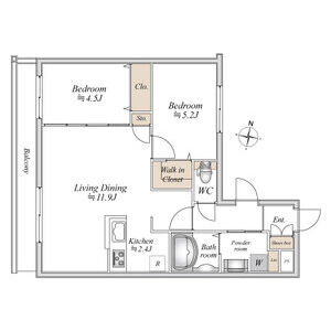 1LDK / 43.8㎡ / 2階