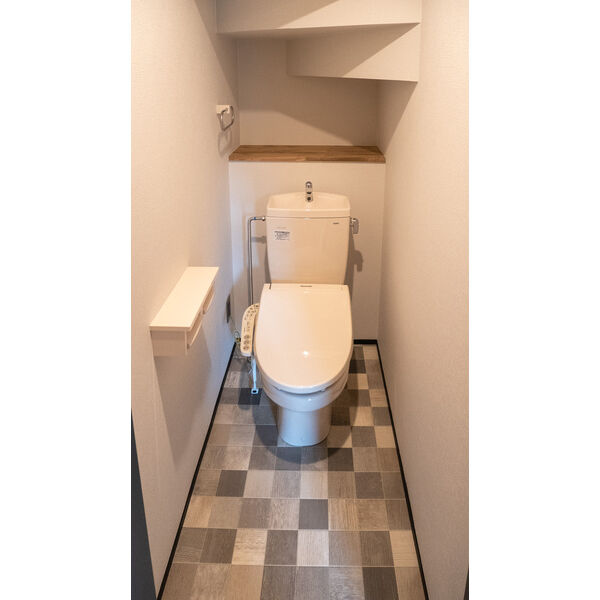 - 風呂(ユニットバス)、トイレ(水洗)、洗面台(独立)、洗濯機置場(室内)、暖房便座、シャワートイレ、追い焚き、シャンプードレッサー(洗髪洗面化粧台)、バス・トイレ別