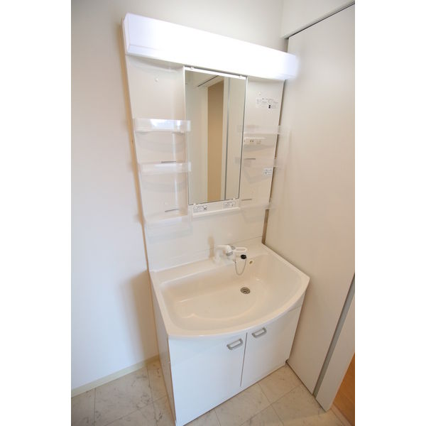 - 風呂(ユニットバス)、トイレ(水洗)、洗面台(独立)、洗濯機置場(室内)、暖房便座、シャワートイレ、追い焚き、シャンプードレッサー(洗髪洗面化粧台)、バス・トイレ別